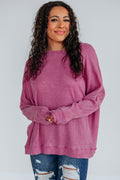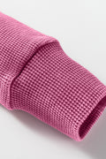 Bright Pink Waffle Knit Patchwork Long Sleeve Loose Top