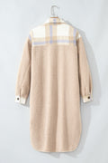 Smoke Gray Plaid Patchwork Collared Button-up Sherpa Long Coat