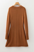 Straw Yellow Ribbed Detail Solid Color Mini Sweater Dress