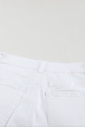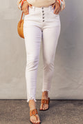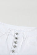White Plain High Waist Buttons Frayed Cropped Denim Jeans